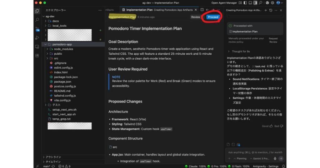 | Approve Plan | 実装計画を承認し、AIにコード生成を開始させる |