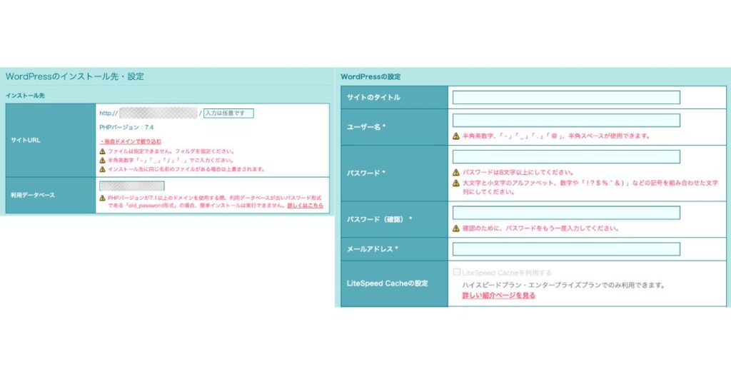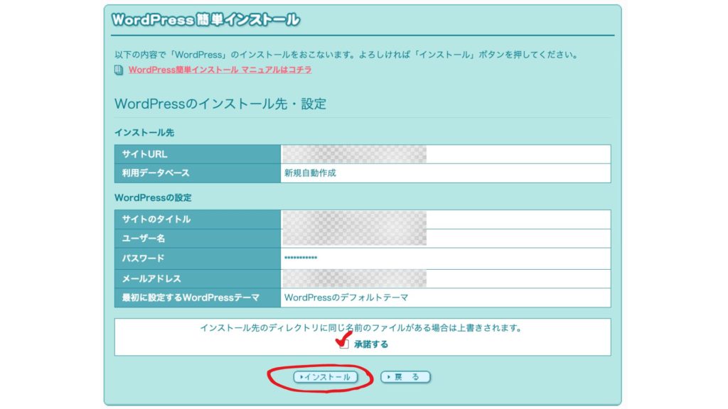 手順3:WordPressインストール情報の入力