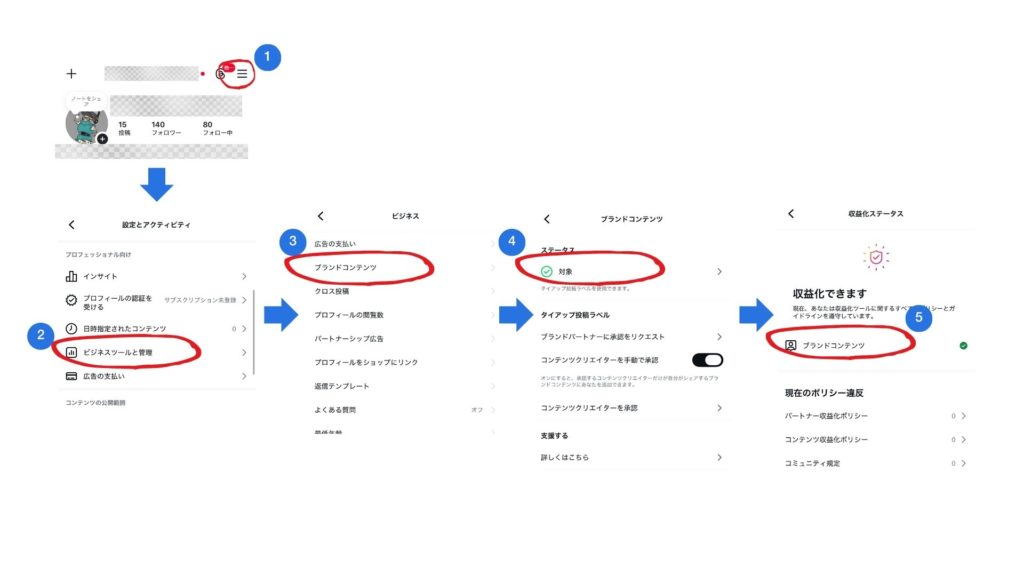 | 3. 広告許可 | 「ブランドパートナーによる宣伝を許可」を必ずONにする |
